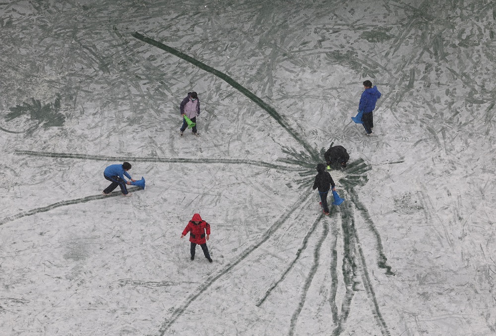 Children play in the snow on the school campus in Chaoyang district, Beijing, Dec 12, 2025. [Photo by Kuang Linhua/chinadaily.com.cn]