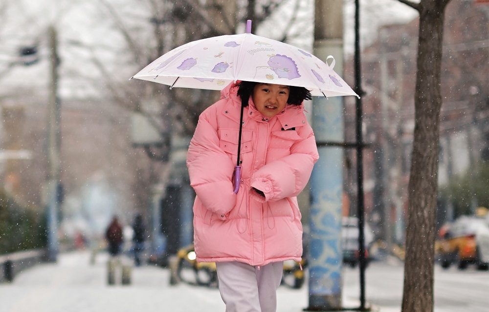 A pedestrian walks? in the snow in Chaoyang district, Beijing, Dec 12, 2025. [Photo by Hua Yuhan/for chinadaily.com.cn]