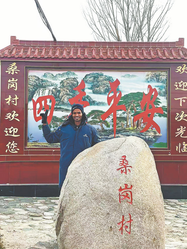 Lemi Chala Tamire poses for a photo in Sanggang village, Yixian county, Hebei province, on Nov 30. [Phto provided to China Daily]