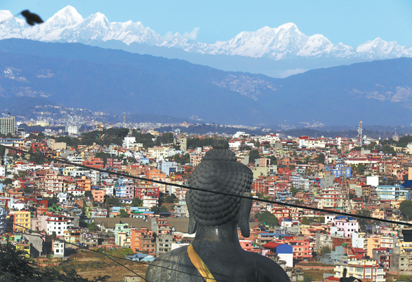 Snowcapped Himalayan range emerges over the Kathmandu Valley in Nepal on Nov 29. SUBAAS SHRESTHA/GETTY IMAGES
