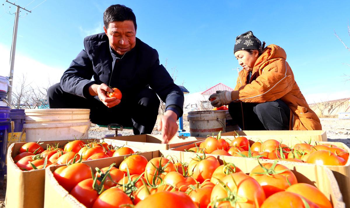 Even in the depth of winter, the facility agriculture industrial park in Linze county, Zhangye city, Gansu province, is brimming with warmth and vitality, as farmers harvest, sort, and pack freshly picked produce for shipment to markets across the region.