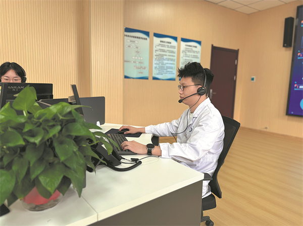 Wu Hengqian, a mental health hotline operator at the 8th People's Hospital of Zhengzhou, Henan province, offers support to those in need.[Photo provided to China Daily]
