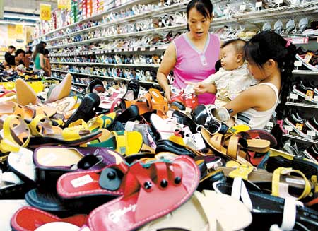 People purchase shoes at a supermarket in Zhengzhou, capital of Central China's Henan Province. [newsphoto]