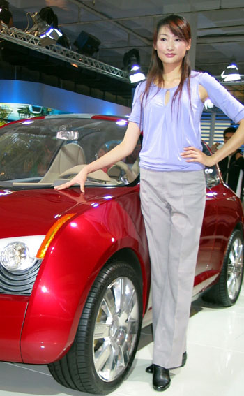 A model poses by a car on show at the 2006 Beijing International Automotive Exhibition in Beijing November 21, 2006. The auto show opened last Sunday and will be closed on November 27. [Chinadaily.com.cn]