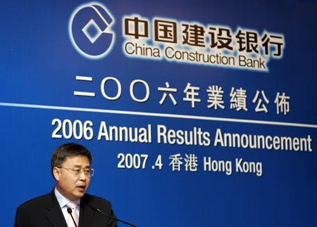 But factoring out the impact of a tax break in 2005, adjusted net profit rose by 18 percent. The bank enjoyed a tax cut of 7.8 billion yuan given to it in 2005 for its restructuring and preparation for the Hong Kong initial public offering (IPO) that year. "The result meets market expectations. Its adjusted net profit growth, along with growth in interest income, is satisfactory," said Louise Wong, director of Hong Kong-based Phillip Asset Management. The bank's net interest income rose 20.4 percent to 140.4 billion yuan last year. "We maintained the advantage in our traditional wholesale business including infrastructure loans and also developed new businesses such as investment banking, SME financing, trust and retail," said bank chairman Guo Shuqing yesterday. The bank's infrastructure loans increased 29 percent last year. Outstanding personal loans including mortgage loans stood at 585 billion yuan by the end of last year, up 28.9 percent over a year ago, the highest among the country's commercial banks. "Its fee income, which jumped as much as 60 percent, is quite high among its peers," said Wong from Phillip Asset Management. Earlier, Bank of China had reported a 12.07 percent growth in non-interest income and the Industrial and Commercial Bank of China reported a growth of 55 percent. China Construction Bank's fee and commission income, 13.57 billion yuan in 2006, accounted for 8.95 percent of its total income, 2.38 percentage points higher than a year ago. "However, its foreign exchange business saw losses last year and its impaired loan hasn't shown any improvement," Wong said. "But all in all, the bank remains one of our preferred long-term Chinese banks given its proximity to China's robust growth. I think the bank has a very dynamic management team." China Construction Bank also announced yesterday that it will further cooperate with its strategic partner, Bank of America which holds an 8.5 percent stake in it in the credit card business. The two will first establish an independent credit card business unit soon. They will then set up a credit card joint venture when relevant legal and regulatory permission is obtained. Under a memorandum of understanding signed last week, CCB will hold a 63 percent stake in the joint venture and Bank of America the rest, with both parties' stakes subject to a lock-up period of no less than three years.