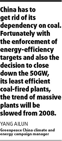 China can achieve economic growth without degrading the environment, by using renewable energy and raising energy efficiency, an energy investigation report has said. Beijing. It is part of a global study called Energy Revolution being undertaken by Greenpeace and the European Renewable Energy Council (EREC). "Our report shows that China can maintain economic growth and stabilize its carbon dioxide (CO2) emissions at the current level by 2050," Sven Teske, an energy expert with Greenpeace International, said. "However this is only possible if industrialized countries and developing countries work together to shift new investment away from fossil fuels toward energy efficiency and renewable energy." China now releases about 5 billion tons of CO2 a year. The report took into account the development necessity of China and highlighted its energy saving plan, which aims to cut energy consumption per unit of gross domestic product (GDP) in 2010 by 20 percent of the 2005 level, as part of the world's efforts to mitigate climate change. The report said China's target is almost in line with the energy revolution scenario set by Greenpeace, which asks for 23.7 percent. On renewable energy, the report showed that China could be more ambitious for the development of wind energy and a solar photovoltaic (PV) system. China has set a target that by 2020, 16 percent of the country's primary energy will come from renewable sources. To achieve that and other measures, China plans to develop 300GW of hydropower, 30 GW of wind power, and 1.8 GW of solar photovoltaic. According to the energy revolution scenario, China has the potential as well as the capacity to develop 118GW of wind power and 25GW of solar PV power by 2020. Yang Ailun, Greenpeace China climate and energy campaign manager, said: "Greenpeace calls for the Chinese government to introduce strong policies such as feed-in-tariffs to support the development of wind and solar PV industries in China. "China has to get rid of its dependency on coal. Fortunately with the enforcement of energy-efficiency targets and also the decision to close down the 50GW, its least efficient coal-fired plants, the trend of massive plants will be slowed from 2008."