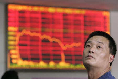 An investor looks at an electronic board at a stock exchange in Shanghai May 30, 2007. China's benchmark stock index tumbled 6.5 percent on Wednesday after the government hiked the stock trading tax in its strongest effort yet to cool rampant speculation. [Reuters]