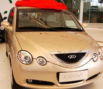 A Chery QQ6 micro car on display at the Shanghai auto show in April 2007. Chery Automobile, partner of Chrysler and Fiat in China, will enter into a $370-million joint venture with an Iranian auto company to make cars in the Middle East country.[newsphoto]