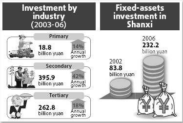 Investment in the province's key industries, including coal, coke, metallurgical and power, has increased 40 percent annually since 2003. Other industries in the province, such as chemicals, pharmaceuticals and construction machinery, have also seen increases of over 30 percent in investment, according to the National Bureau of Statistics (NBS).