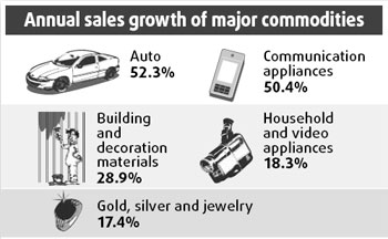 Since 2003, authorities have strengthened the commodity circulation system's reform, which has provided a boost to the expansion of the retail sales.