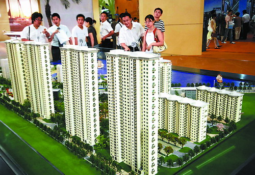 Homebuyers at a real estate exhibition in Dalian, Liaoning Province. The government may raise the interest rate of mortgage lending to curb the fast rise in house prices and speculation in the real estate market. [China Daily]