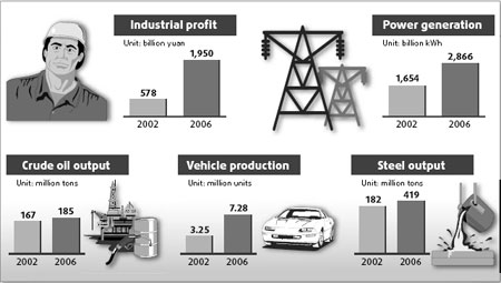Increased investment has also seen the number of companies with annual revenue higher than 2 million yuan increase from 120,000 in 2002 to 300,000 last year, according to the report. It said foreign and private investors own 70 percent of the country's 300,000 industrial firms.