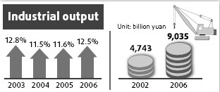 Measures to encourage the development of the private economy in recent years have seen private firms' industrial output increase at a faster pace. Private companies' contribution to China's industrial output increased from 10.7 percent in 2002 to 21.2 percent in 2006.