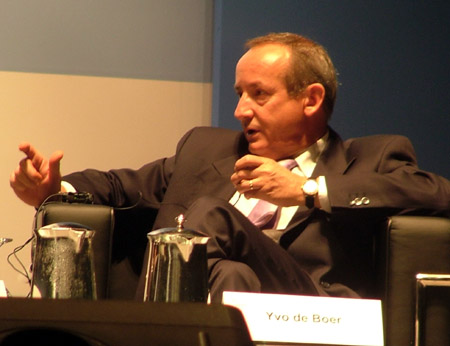 Carbon Forum AsiaUpdated: 2007-11-12 10:20 ![]() Yvo do Boer, head of the UN Framework Convention on Climate Change, reacts in a media interaction session at Carbon Forum Asia, which opened in Singapore on November 6. [chinadaily.com.cn]