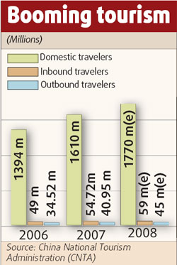 Last year, 40.95 million Chinese traveled overseas, up 18.6 percent from 2006.