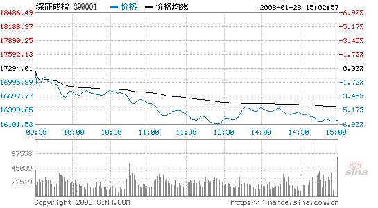 Updated: 2008-01-28 16:51 The mainland stock market suffered heavy losses on Monday, failing to recover from last week's tumble, as the major indices in Shanghai and Shenzhen lost more than six percent in panic selling. The benchmark Shanghai Composite Index opened 42 points lower at 4,720.56, and then never returned to its opening value. Led by the once popular blue chips and heavy-weight financial sector, the index slump to the day's low of 4,409.08 around 1:30 pm. Although bargaining funds later drove the market back a little, panic selling dominated the market in the last trading hour and pushed the index down by close to 4,419.29, 342 points or 7.19 percent lower than Friday's close. Shanghai Composite Index ![]() The Shenzhen Component Index, covering major stocks on the smaller Shenzhen market, also fell 6.45 percent to 16,177 points. Turnover of the two markets shrank to 170 billion yuan as losers far outnumbered winners, 1,323 to 74. More than 400 stocks closed down at the maximum daily limit of ten percent. Blue chips were among the worst performers today, as heavyweight PetroChina dropped by another 8.11 percent to 24.02 yuan, only half of its record intial public offering price last November. Financial sectors lost even more as investors' confidence in the industry may be overshadowed by recent losses of Western financial tycoons and international ripple effects. China Life and CITIC Securities both bottomed out at the daily limit, while Ping'an Insurance has lost 20 percent within a week since it declared a controversial share offer plan last Monday. Shenzhen Component Index ![]() In contrast, stock derivates came alive today, with warrants betting on drops for target stocks in high demand. Nanhang JTP1, a put warrant issued by Southern Airlines, surged a spectacular 60 percent. Hunan Valin Steel's warrant (Valin JTP1) reaped similar gains although the Shenzhen bourse suspended its trading for several times citing "abnormal fluctuations." Market analysts have pointed out that so far, most put warrant prices are still much higher than their internal value, and excessive speculation can lead to unexpected losses. The mainland stock performance today was echoed by neighboring markets. The benchmark Hong Kong Hang Seng Index slumped 4.25 percent to 24,053 points. Particularly, the Hang Seng China Enterprise Index went deeper by 4.97 percent. Nikkei 225 Index also closed 3.97 percent down. Market watchers said today's loss is a continuation of last week's retreat. The Shanghai Composite Index lost 8.08 percent last week, the heaviest weekly loss in ten years. Total capitalization of the A-share market shrank nearly four trillion yuan. Major indicator stocks such as ICBC and PetroChina dropped more than ten percent within the week. With this gloomy Monday, it is reasonable to say that the selling rush has not ended so far, and investors will certainly be very cautious when making investment decisions.