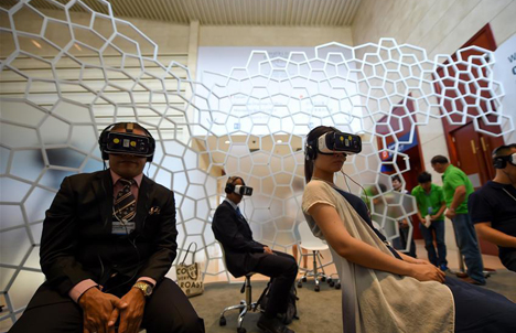 Visitors try at exploration zone on Summer Davos Forum in China's Tianjin