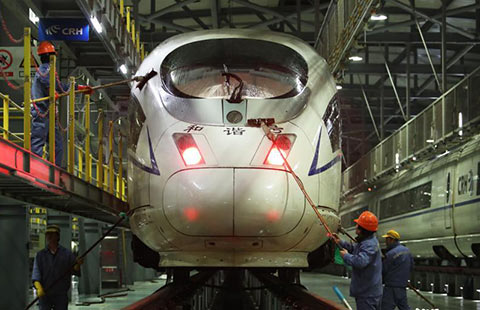 High-speed trains receive thorough clean