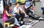 A mainland shopper tries a 24-carat gold necklace in a jewelry store in Hong Kong’s Tsim Sha Tsui shopping district. Local and mostly mainland buyers have been crowding jewelry shops throughout Hong Kong in an attempt to grab a bargain during the May Day holiday. Bobby Yip / Reuters