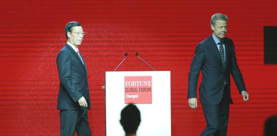 China's VP Zhang Gaoli delivered an address at the Gala Dinner for the Opening of 2013 Fortune Global Forum on Thursday.
