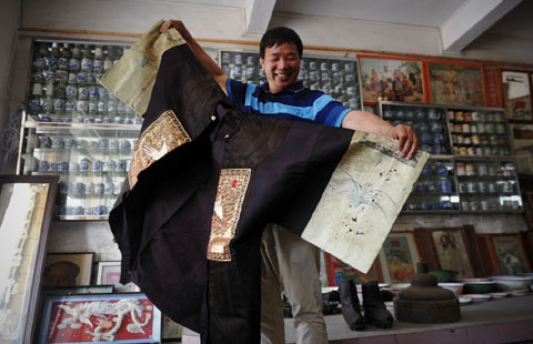 Chinese tattoo artist Wang Wenbin inks the thigh of a customer in a studio in Shanghai, March 29, 2015. [Photo/IC]