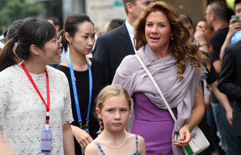 Fourteen students from the Qing Lan primary school in Hangzhou were elected to present flowers to world leaders upon their arrival.
