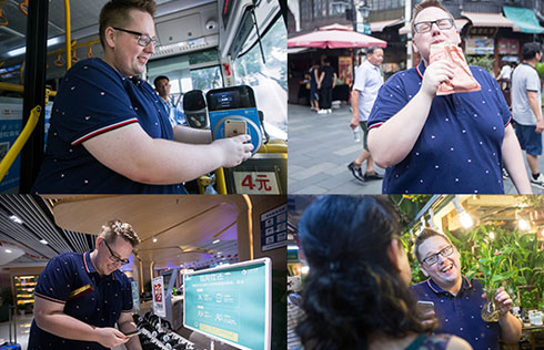 Visitors examine smart robots at the 3E-Beijing International Consumer Electronics Expo, July 8. The "3E" stands for electronic, entertainment and economic. The event began on Saturday, ending on Monday, featuring robots, augmented and virtual reality, drones, autonomous driving technology, intelligent hardware and e-sports. [Photo/VCG] |