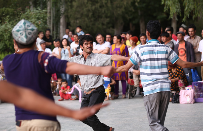 Female dancers perform Qiuci dance at Aksu in Xinjiang Uygur autonomous region, June 10, 2017. [Photo/VCG] |