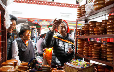More than 3,000 street stalls along Lhasa's Yutok Street moved to a new shopping mall on Friday to better protect and upgrade the ancient city center.