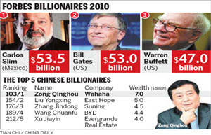 A total of 64 people from the Chinese mainland made the Forbes magazine list of the world's richest billionaires, moving up to take second place for the first time.