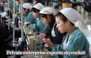 Private Chinese enterprises exported goods worth $481.3 billion in 2010, a jump of 223 percent compared with 2005, said a report by the All-China Federation of Industry & Commerce (ACFIC).