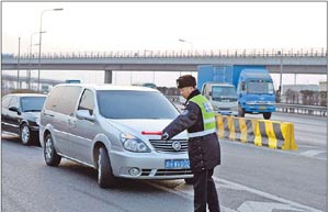 Starting Tuesday - the first working day of 2011 - vehicles that are not registered in Beijing are prohibited from entering the urban area inside the Fifth Ring Road during the two daily rush hours.