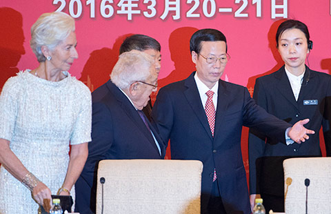 Facebook CEO Mark Zuckerberg and Jack Ma, CEO of Alibaba Group, jointly attend a panel discussion held as part of the China Development Forum 2016.