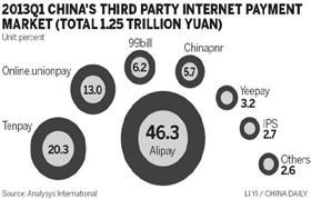 Chinese Internet giants Baidu and Sina received third party payment licenses from the People's Bank of China, to conduct related online payment services within the country.
