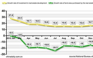 The investment in real estate development during the first two months of 2013 was $107.25 billion, up 22.8 percent.
