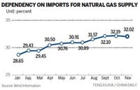 China's dependency on imported natural gas is expected to surge almost 19 percent this year as the nation's battle against air pollution drives up demand for the clean-burning fuel.