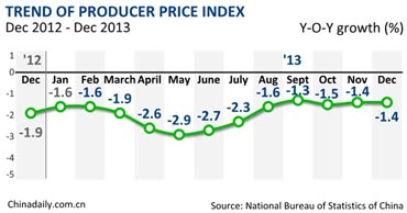 China's producer price index (PPI) fell 1.4 percent year on year in December, data from the National Bureau of Statistics (NBS) showed on Thursday.