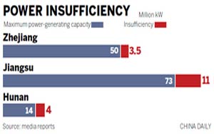 The power shortage, which is rare in low-energy-consuming months, has cut a large swath in the country, including important economic powerhouses in the east and south and many provinces in other parts of China.
