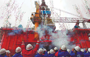 A 3,000-meter deepwater jumbo oil drilling platform was delivered here Monday to China National Offshore Oil Corp (CNOOC), the country's largest offshore oil producer, the latest step for China as it seeks more energy from the ocean.