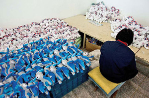 Representatives of the Chinese manufacturer of Olympic mascot dolls on Tuesday said reports claiming its products were made in sweatshops had been based on untrue information and its factory is open to international organizations and the media for inspections.
