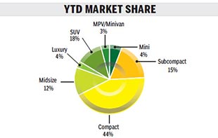 Sales of light vehicles - including passenger and light commercial vehicles - in June continued May's trends, rising 8.5 percent year-on-year to 1.72 million units.
