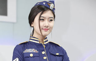 Korea's Kumho Tires brought well-known Chinese CTCC racer Han Han's racing car to its pavilion together with a Korean model at Auto Shanghai 2013.