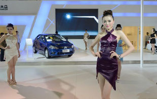 Model pose at FAW-Volkswagen pavillion at the Yangzhou auto show in Jiangsu province on May 17, 2013.