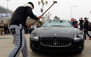 Owner of the smashed $423,000 Maserati Quattroporte said the trader cheated him by installing used parts.