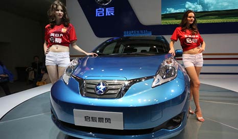 Models and new cars are seen on display during the 12th China International Automobile Exhibition in Guangzhou, Guangdong province