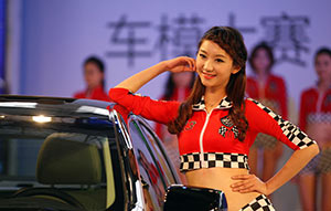Models poses at the Yangzhou auto show in Jiangsu province on May 17, 2013.