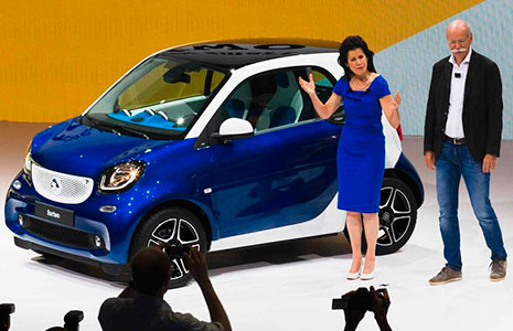 German car maker Mercedes-Benz debuted the new generation of its lifestyle smart cars in Berlin on Wednesday with two new models -- two-seater smart fortwo and four-seater smart forfour.