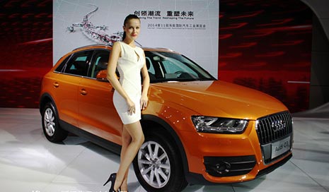 Models are pictured on March 23, 2014 at the Hainan International Auto Show in Haikou city, South China's Hainan province.