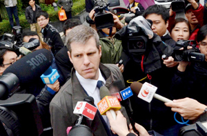 Journalists wait outside the Guangdong High Court, where the final ruling of the much debated iPad trademark dispute begins on Feb 29, 2012.