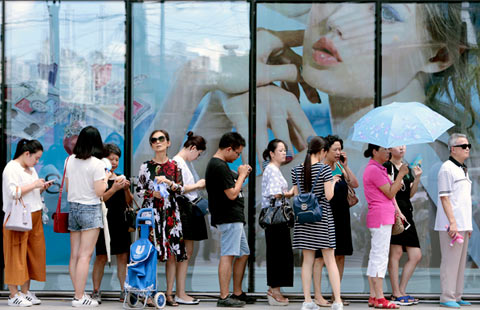 A woman tries on Dlodlo V1 VR glasses during a press preview for the glasses at the Marriott Marquis, August 8, 2016 in New York. The Dlodlo virtual reality glasses feature a smaller and lighter design than other virtual reality headsets and will retail for $559. [Photo/VCG] |